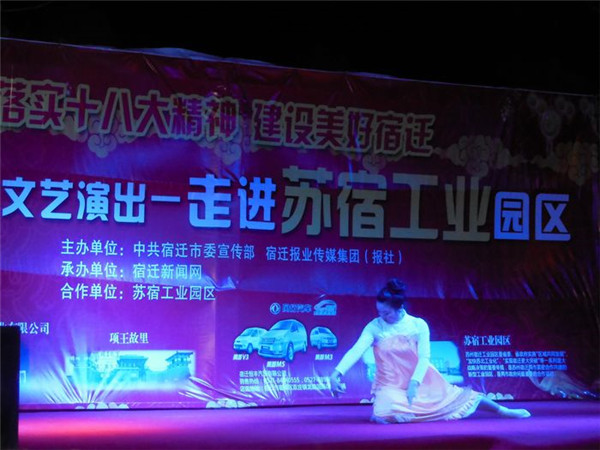 落實十八大精神 建設美好宿遷”服務基層文藝演出由市委宣傳部、宿遷報業(yè)傳媒集團(報社)主辦,宿遷新聞網承辦,旨在深入宣傳黨的十八大和市委四屆三次全體(擴大)會議精神,落實文化惠民措施,將走進全市100余個鄉(xiāng)鎮(zhèn)、社區(qū),將包括歌舞、雜技、曲藝、戲劇等內容的百場精彩演出奉獻給廣大基層群眾,此次受園區(qū)邀請,專程赴園區(qū)公舍演出,為廣大工友及周邊居民帶來了一場精彩的文化大餐。