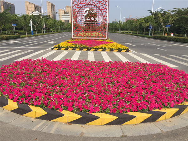 (陽澄湖路西入口草花擺放)