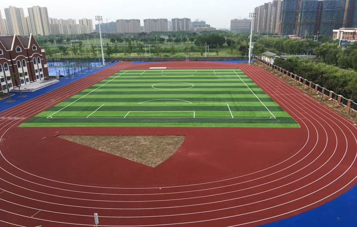 本次體育場(chǎng)地工程主要包括300米塑膠跑道、1個(gè)燈光足球場(chǎng)、3片籃球場(chǎng)和3片排球場(chǎng)。 2018年11月,塑膠跑道國(guó)家強(qiáng)制性標(biāo)準(zhǔn)《中小學(xué)合成材料面層運(yùn)動(dòng)場(chǎng)地》GB 36246-2018正式實(shí)施,本體育場(chǎng)地項(xiàng)目從前期的規(guī)劃設(shè)計(jì),到制定參數(shù),到施工過(guò)程中的選材用料和現(xiàn)場(chǎng)施工工藝的把控,嚴(yán)格按新國(guó)標(biāo)實(shí)施,同時(shí)在校方見(jiàn)證下按要求對(duì)固體顆粒、膠水、PU等材料現(xiàn)場(chǎng)取樣并送至上海專業(yè)檢測(cè)機(jī)構(gòu)進(jìn)行復(fù)測(cè),各項(xiàng)專業(yè)檢測(cè)報(bào)告均合格。在施工過(guò)程中狠抓質(zhì)量、盡職盡責(zé),確保環(huán)保、安全、精品,目前項(xiàng)目基本完工,取得了較好的觀感效果,同時(shí)也將為學(xué)校體育教學(xué)和體育活動(dòng)提供了良好的場(chǎng)地條件。