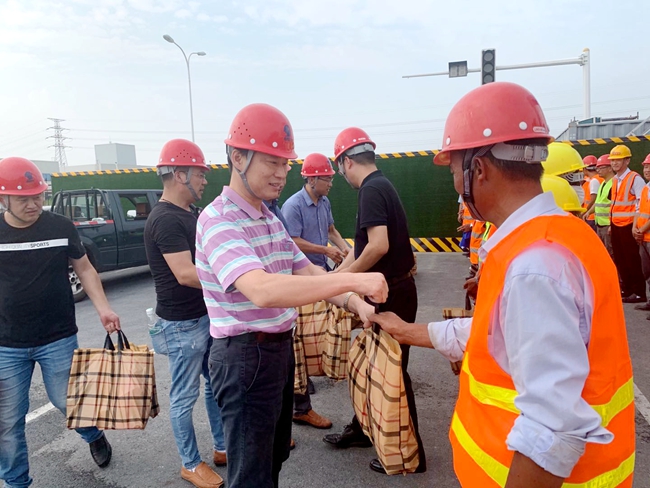 8月21日下午,開發(fā)公司副總裁劉建華帶隊慰問市政工程項(xiàng)目現(xiàn)場工人,給他們送去毛巾、香皂、洗發(fā)水等防暑降溫用品,感謝他們對園區(qū)市政工程的建設(shè)作出的貢獻(xiàn)。