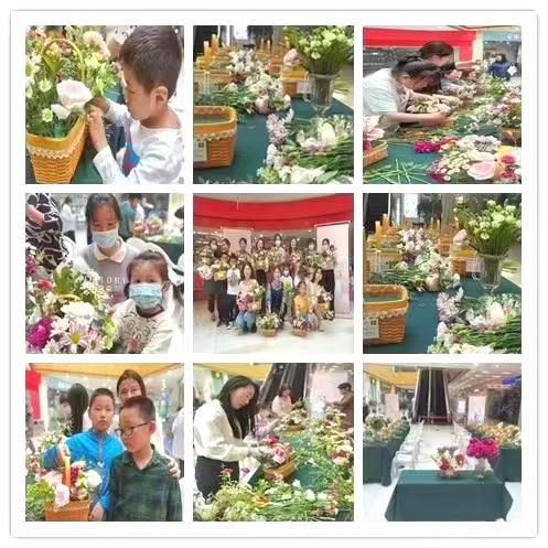 活動(dòng)現(xiàn)場(chǎng),花藝?yán)蠋熢敿?xì)講解了花藝的歷史淵源、特色、插花類(lèi)型和技巧,并手把手傳授插花實(shí)操要領(lǐng)。在老師的指導(dǎo)幫助下,參與的媽媽和孩子們邊看邊學(xué),認(rèn)真創(chuàng)作,將原本普通的花草經(jīng)過(guò)巧手制作成精致的插花作品。活動(dòng)得到了媽媽和孩子的廣泛參與,尤其是媽媽們手捧著自己孩子制作的色彩鮮艷、錯(cuò)落有致的花束拍照留念,臉上溢滿(mǎn)了幸福。