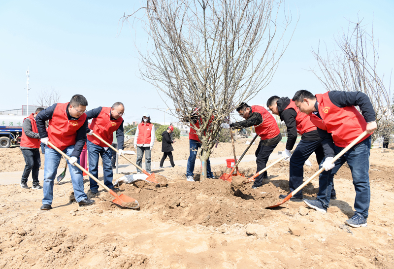 種一棵小樹,綠一方凈土,多一片綠葉,多一份溫馨。3月12日城發(fā)公司黨支部組織志愿者來到園區(qū)蘇悅公園開展主題黨日暨義務(wù)植樹活動(dòng),大家分工合作,有的挖坑、有的扶苗、有的填土、有的澆水......場面繁忙有序,很快一棵棵希望的樹苗在園區(qū)的大地上“安家落戶”。
