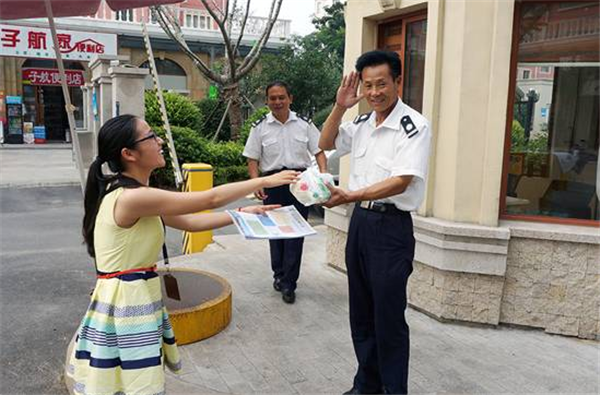 8月27日,社區(qū)為了對(duì)奉獻(xiàn)在基層一線的保安、保潔表達(dá)關(guān)心與敬意,特地準(zhǔn)備了防暑降溫物品,對(duì)高溫執(zhí)勤、勞作的在崗人員進(jìn)行了慰問,并叮囑大家注意休息、做好防暑降溫。