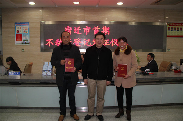 市國土局局長趙昌說:“園區(qū)不動(dòng)產(chǎn)登記走在全市前列,今天宿遷市首期不動(dòng)產(chǎn)權(quán)證書的正式頒發(fā),標(biāo)志著不動(dòng)產(chǎn)統(tǒng)一登記制度在園區(qū)范圍內(nèi)全面啟動(dòng)。”
