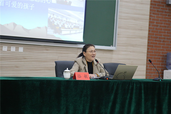 駱敏從“做教師的意義、如何成為學(xué)生心目中的好老師和如何成為大家心中的好老師”三個方面給老師們上了一堂別開生面的專業(yè)發(fā)展課。駱敏指出,教師應(yīng)該具有高尚奉獻、完善自我的意識,特別要從細節(jié)方面、從學(xué)生的角度思考,開啟通向優(yōu)秀教師的通道。駱敏認為學(xué)生心目中的好老師應(yīng)該是一名演說家、幽默大師,具有獨特的教學(xué)藝術(shù),對孩子能夠真誠贊美、懂得尊重學(xué)生、真心關(guān)愛學(xué)生。作為好老師,應(yīng)該修德、修志、修學(xué)、修能、修性,有欣賞的眼光,感恩的心態(tài)。
